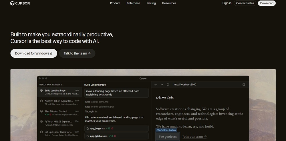 Best for: Developers shipping features, refactoring codebases, and working with AI directly inside the editor.