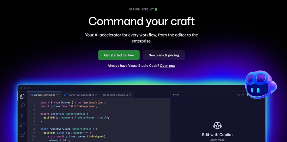 GitHub Copilot is still the default AI coding assistant for many teams because it integrates cleanly with VS Code, JetBrains, Visual Studio, Neovim, and GitHub workflows. It offers inline completion, chat, and pull request support across major languages.