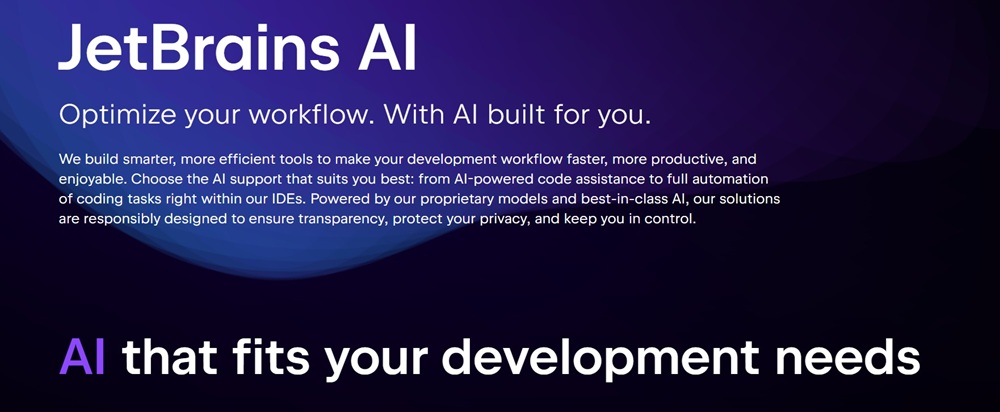 JetBrains AI Assistant brings AI directly into IntelliJ IDEA, PyCharm, WebStorm, GoLand, Rider, and other JetBrains IDEs. It helps with code generation, explanations, refactoring, and documentation without forcing teams into a new editor.