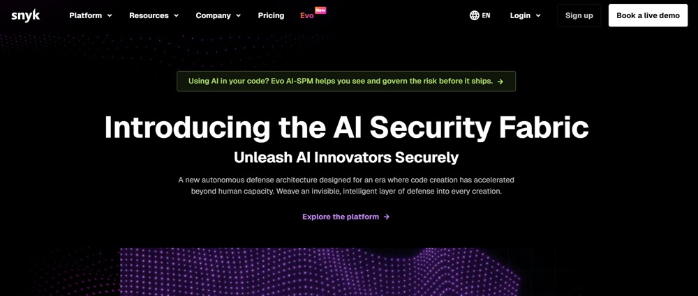 Snyk AI focuses on security rather than code generation, making it especially important as AI-assisted development increases shipping speed. It helps identify vulnerabilities in code, dependencies, containers, and infrastructure as code, then suggests fixes in developer workflows.