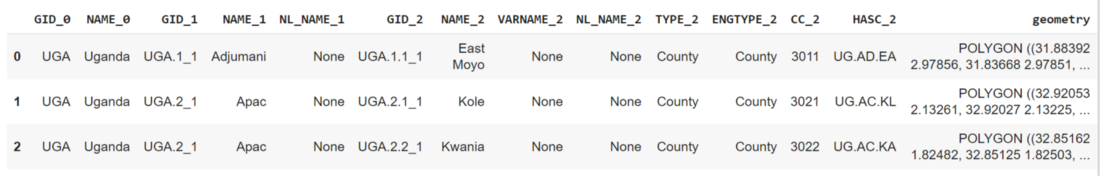 uga_gdf.head(3) #check the first few rows of the shapefile dataframe