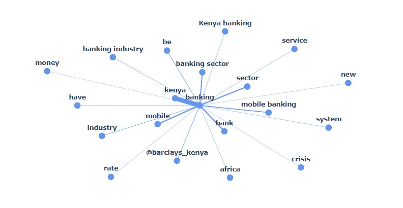 With the network graphs below, we can see what has been mentioned most frequently with different keywords of a selected topic. The central node of the network always represents a keyword (i.e. that was used in tweet scraping on a topic) and the thickness of the edges (lines) represents the frequency of the âconnectedâ words/phrases (peripheral nodes) appearing together with that central node (the thicker, the more frequently) in the chosen year. Here, only the top 20 most frequent words/phrases are shown with each keyword.