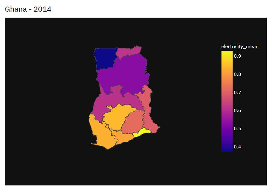 Exploratory analysis for 5 African countries Burundi, Ghana, Nigeria, Benin, and Cameroon. Showing the electricity access means in different districts. The dashboard visualizes the historical and current data besides maps visualization of the model’s predictions.